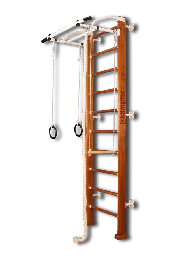 Комплектация: шведская стенка, турник, канат, кольца, трапеция.
